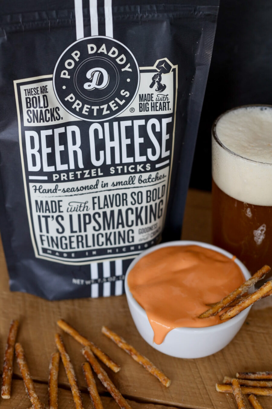 These taste just like the good pub beer cheese you get in restaurants. Pop Daddy pretzels are always fresh and crisp, with a hint of butter…the beer cheese just adds another layer of tasty flavor!